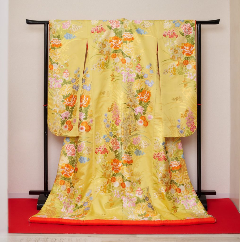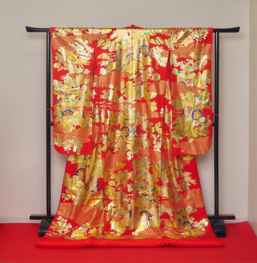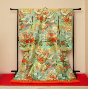 白無垢と並ぶ婚礼衣装で、地紋の入った色地に、