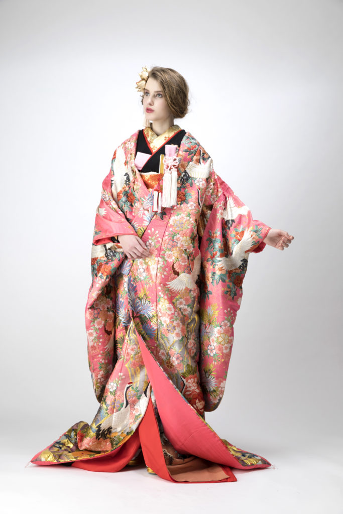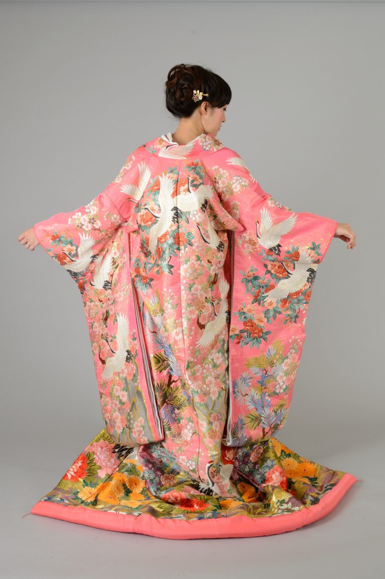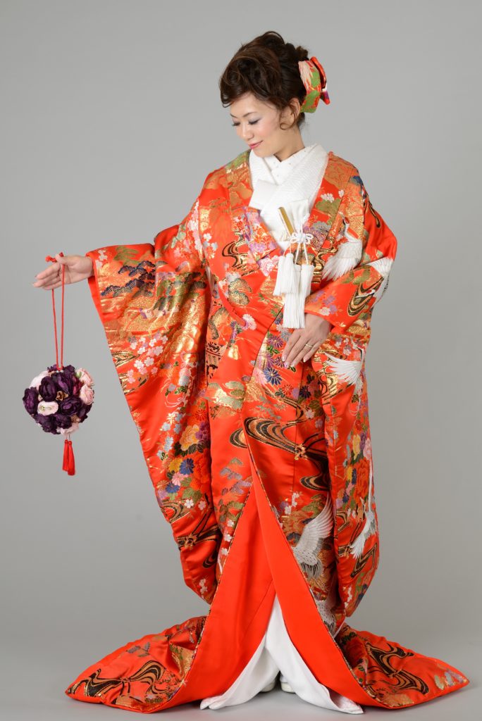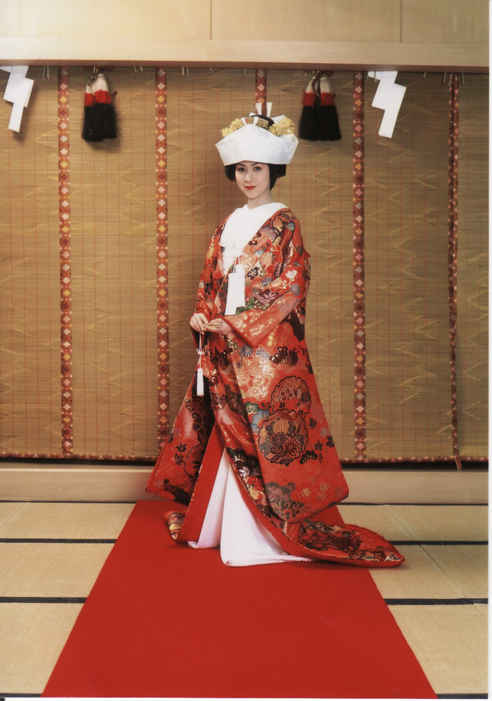元々は武家社会において、地位の高い女性が小袖の上にもう1枚、小袖を羽織っていたものが花嫁衣裳になったようです。大河ドラマや時代劇でお馴染みです。