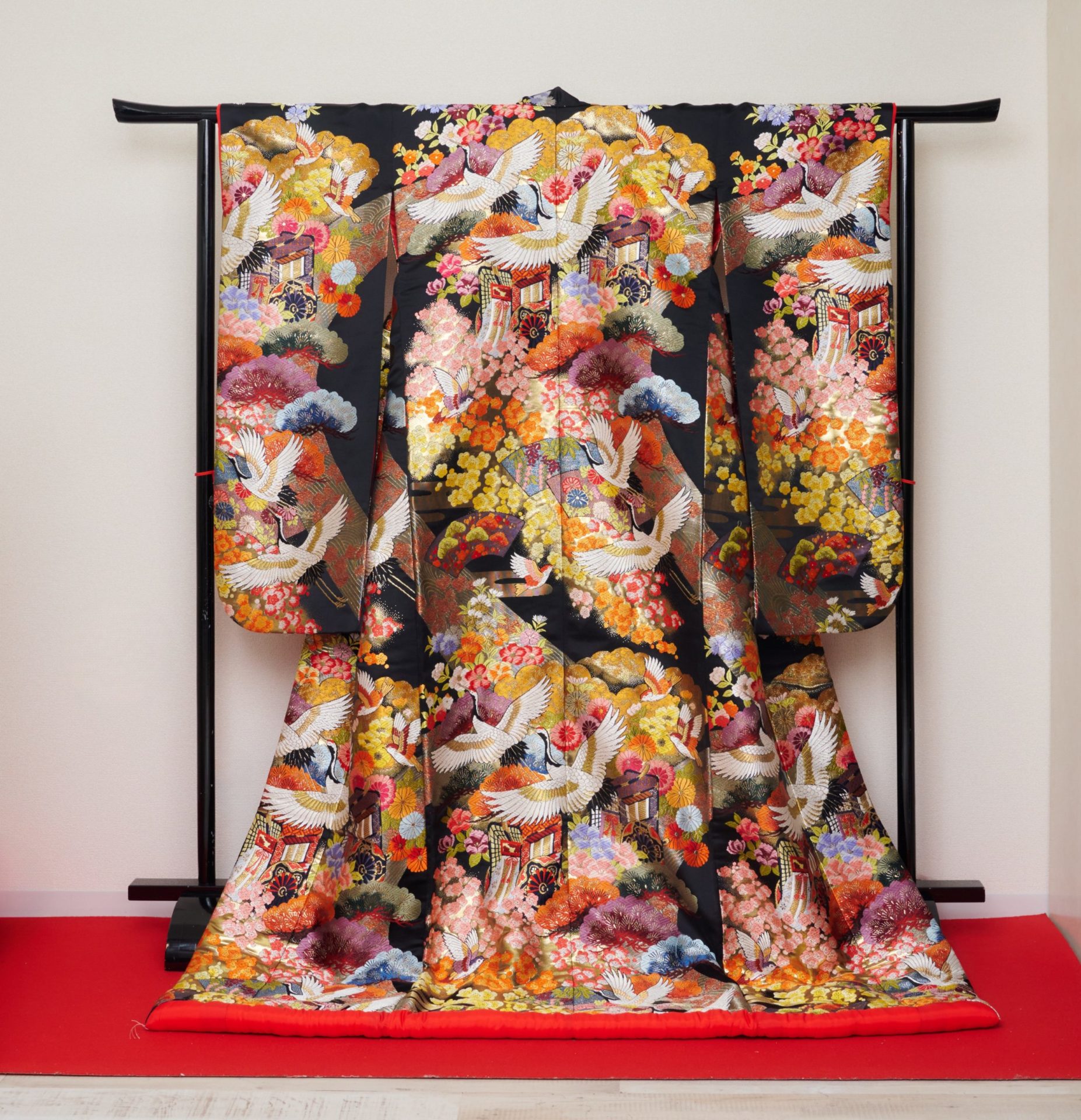 昨今、人気の高い「黒引き振袖」は、江戸時代の武家の正式な婚礼衣装で、昭和初期までは、白無垢や色打掛よりもよく着られていました。