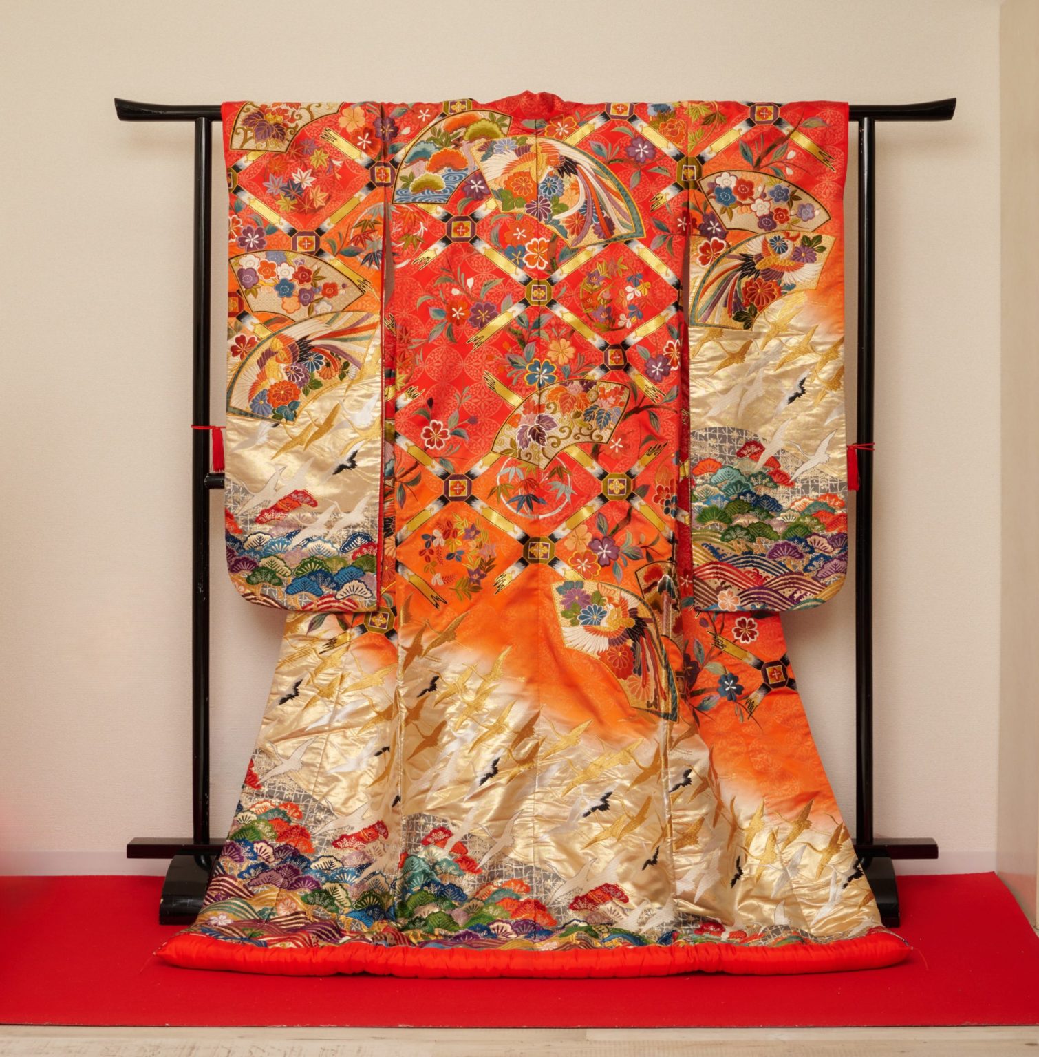色打掛、日本の伝統的な女性の着物の最高礼装です。これは、特に結婚式や格式の高い行事などで着用される豪華な着物であり、そのデザインや色使いは非常に華やかです。