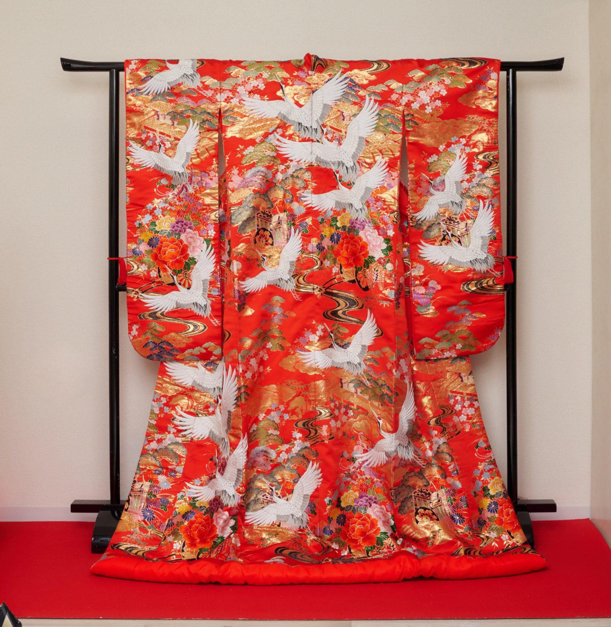 色合いは、未婚女性の色とされる”赤”の地色が一般的です。