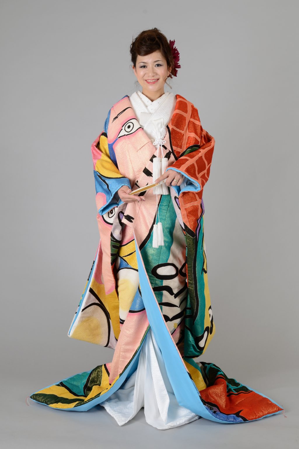 現在では、赤以外にも、ピンク、みどり、黄色など様々な色をお召しになります。